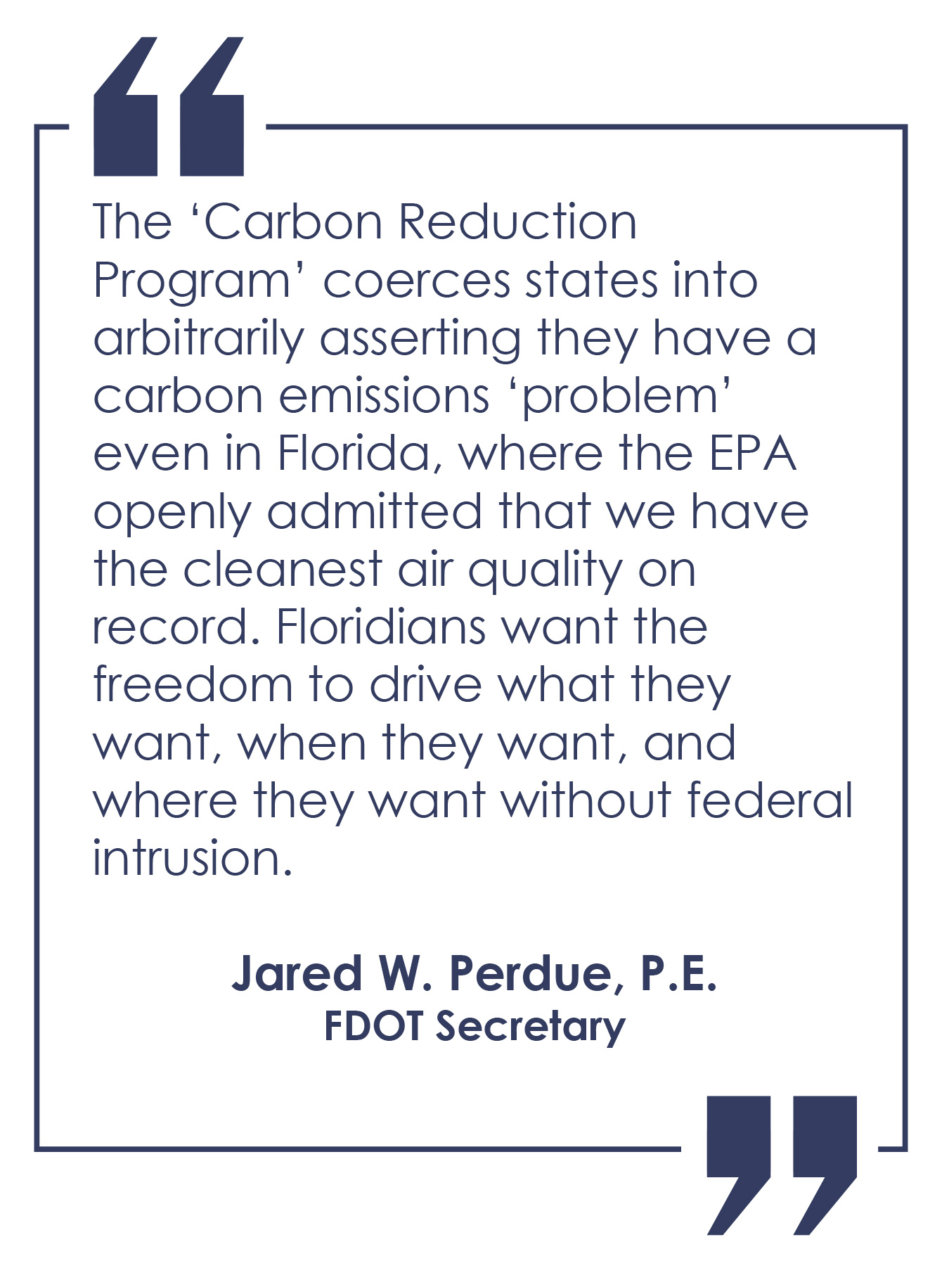 The Florida Department of Transportation (FDOT) was among the many organizations concerned about the program because USDOT provided no clear guidelines. States were expected to create a strategy without guidance and risk penalties if they failed to meet metrics implemented by USDOT after submitting their strategy.
